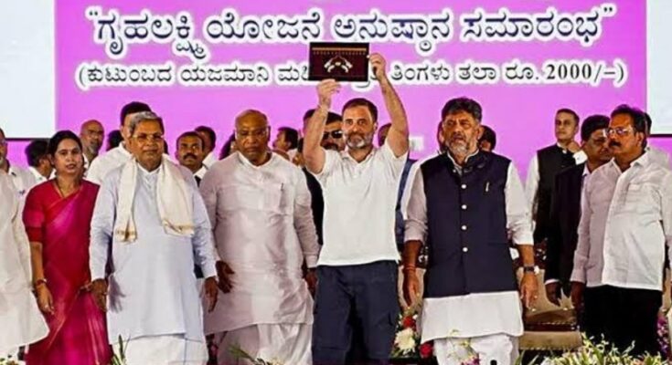 1.9 കോടി സ്ത്രീകളുടെ അക്കൗണ്ടുകളിൽ 2000 രൂപ എത്തി.ബസ്സുകളിൽ സ്ത്രീകൾക്ക് സൗജന്യ യാത്ര അനുവദിച്ചു.10 കിലോ അരി സൗജന്യമായി ബിപിഎൽ കുടുംബങ്ങളില് എത്തുന്നു.സ്ത്രീകൾക്കായി ലോകത്തുള്ള ഏറ്റവും വലിയ ക്ഷേമപദ്ധതിയാണ് ഇത്.ലോകത്തെവിടെയും ഇത്രയും വലിയ തുക സ്ത്രീകൾക്കായി നൽകുന്ന പദ്ധതിയില്ല എന്നും രാഹുൽ വ്യക്തമാക്കി