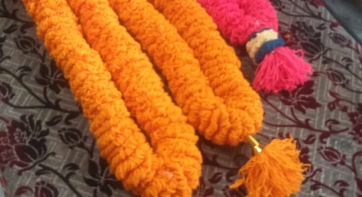 വർണ നൂലുകൾ കൊണ്ട് തീർത്ത പടുകൂറ്റൻ ഹാരങ്ങൾ.. രണ്ടടി മുതൽ അഞ്ചടിയിലും പത്തടിയിലും ഒക്കെ തീർക്കുന്ന മാലകൾ ശ്രദ്ധിച്ചിട്ടുണ്ടോ?